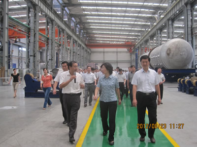 8月23日上午,三門(mén)峽市市長(zhǎng)趙海燕帶領(lǐng)黨政代表團(tuán)在開(kāi)封市常務(wù)副市長(zhǎng)黃道功、開(kāi)封新區(qū)黨工委書(shū)記焦躍進(jìn)的陪同下考察了開(kāi)封空分新廠區(qū)項(xiàng)目建設(shè)情況及生產(chǎn)運(yùn)行情況。圖為公司副總經(jīng)理薛金河正在向代表團(tuán)介紹新廠區(qū)建設(shè)情況。