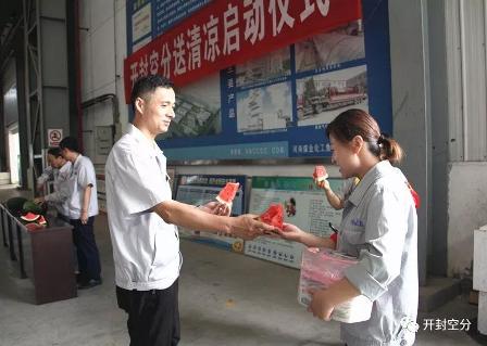在空分設(shè)備廠車(chē)間內(nèi),曹小毛、王志峰、張石芳為各基層工會(huì)送上了小藥箱,把切好的西瓜送到工人師傅們手中。“天氣炎熱,大家多注意身體。”“來(lái),吃塊西瓜降降溫吧!”……豐富的藥箱,清涼的西瓜,溫馨的叮囑,讓奮戰(zhàn)在一線(xiàn)的干部職工們切身感受到了公司的殷切關(guān)懷。大家紛紛表示,要立足崗位,不忘初心,牢記使命,為公司年度生產(chǎn)任務(wù)目標(biāo)實(shí)現(xiàn)做貢獻(xiàn)。